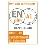 Feuchtigkeitsrate : ≤ 8.00% Pro Palette – 66 Säcke a 15 kg Heizwert: mind. 4,8 kwh/kg Gesamt: 2970 kg EN Plus A1 und DIN Plus zertifiziert